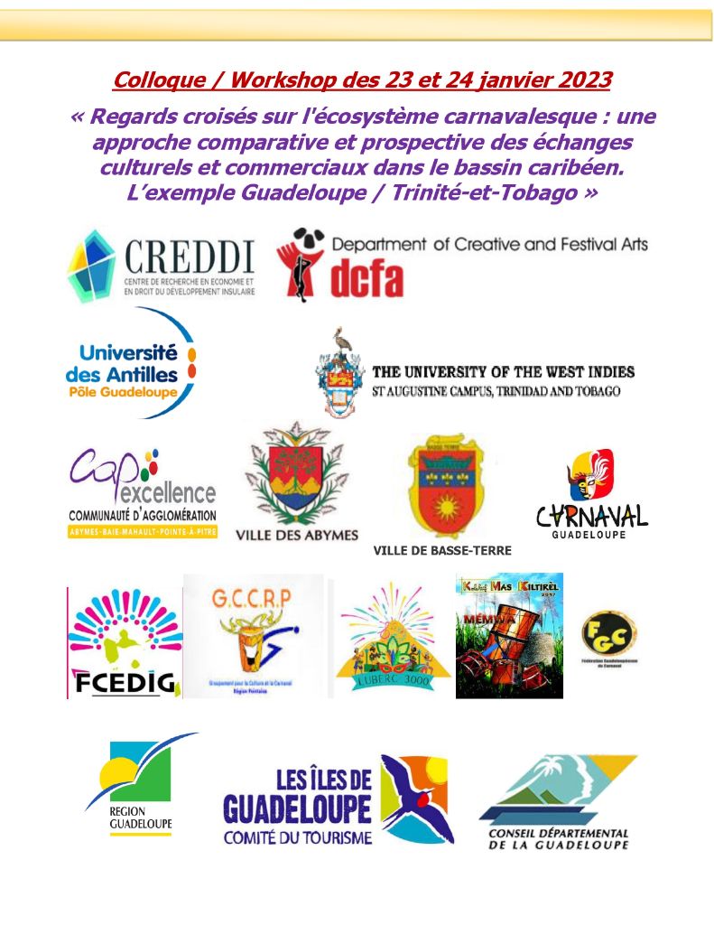 Colloque / Workshop : Regards croisés sur l’écosystème carnavalesque : une approche comparative et prospective des échanges culturels et commerciaux dans le bassin caribéen. L’exemple Guadeloupe / Trinité-et-Tobago – 23 et 24 janvier 2023